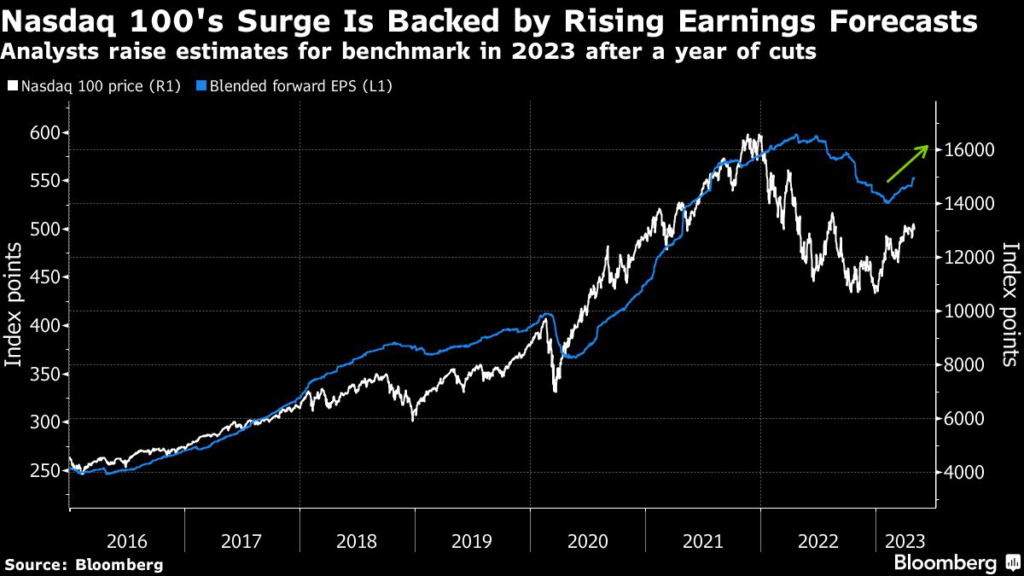 Analysts are raising earnings per share estimates for the Nasdaq 100 Index after cutting their expectations through 2022 in a sign that confidence is starting to return.