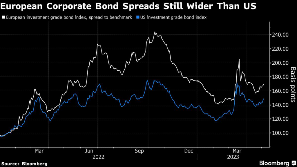 (Bloomberg) — Some of the world’s biggest asset managers are buying up European corporate bonds — seeing the region as a safer bet as turmoil engulfs US regional banks.