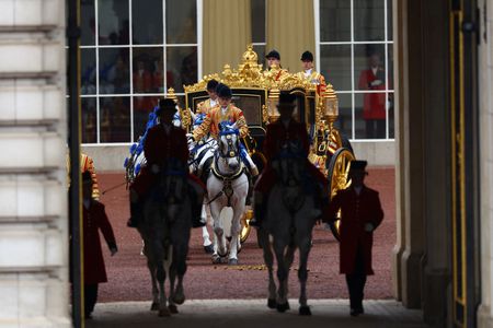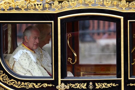 LONDON (Reuters) – King Charles and Queen Camilla left Buckingham Palace in the Diamond Jubilee State Coach on Saturday, making their way to Westminster Abbey for the coronation.