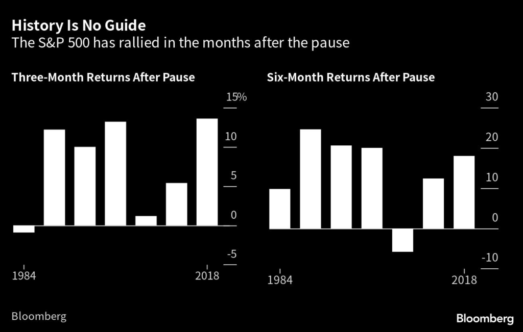 US stocks have rallied following the end of six out of the past seven rate-hiking cycles and have delivered an average return of 13% over the next six months as fixed income has reaped gains.