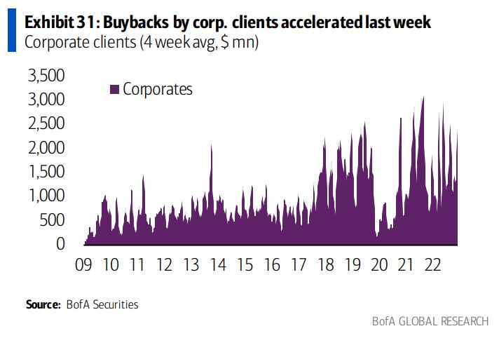 “Buybacks have been tracking above typical seasonal trends the last five weeks after tepid trends in February and March year-to-date,” BofA strategists led by Jill Carey Hall said in a note to clients Tuesday.