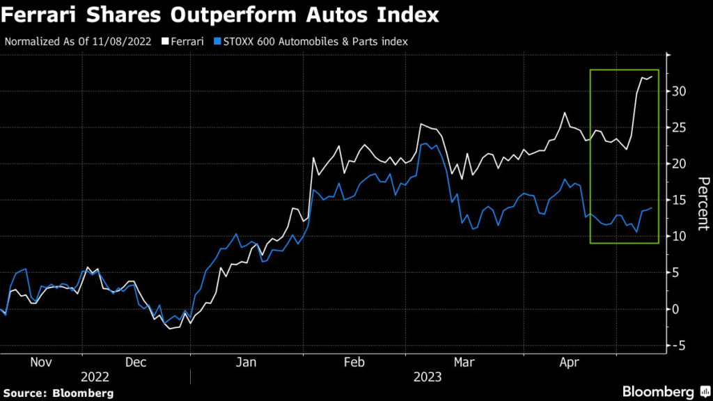 While Ferrari is benefiting from a surge in demand for its luxury cars, Stellantis shares have been under pressure after the company posted disappointing first-quarter sales in Europe on May 3, reflecting a looming downturn in the region driven by inflation and higher interest rates.