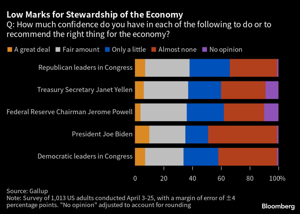 (Bloomberg) — Public confidence in Jerome Powell’s leadership of the Federal Reserve has dropped precipitously, according to a new survey, and is now at or below his predecessors’ as the central bank wages its war against inflation.