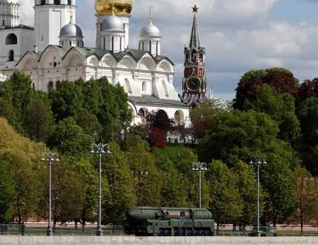 MOSCOW/KYIV (Reuters) -Russia fired cruise missiles at Kyiv on Tuesday and paraded troops across Moscow’s Red Square for its annual celebration of victory in World War Two, pared back amid shortages of manpower and arms at the front after a failed winter campaign in Ukraine.