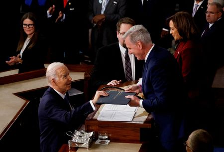WASHINGTON (Reuters) – U.S. President Joe Biden meets Republican House Speaker Kevin McCarthy and other congressional leaders at the White House on Tuesday afternoon for closed-door talks as a potentially catastrophic June default looms.