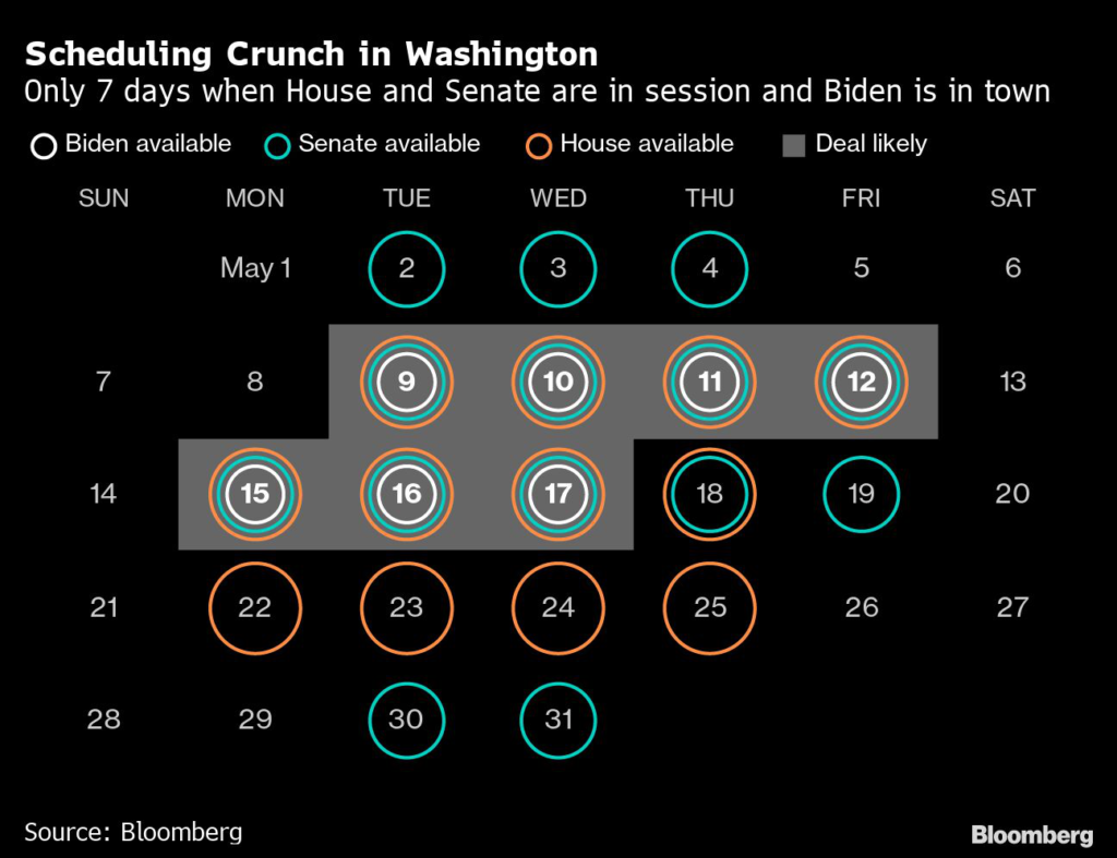 (Bloomberg) — President Joe Biden and House Speaker Kevin McCarthy agree on one thing heading into a crucial Tuesday meeting: they don’t want a short-term debt-limit extension.