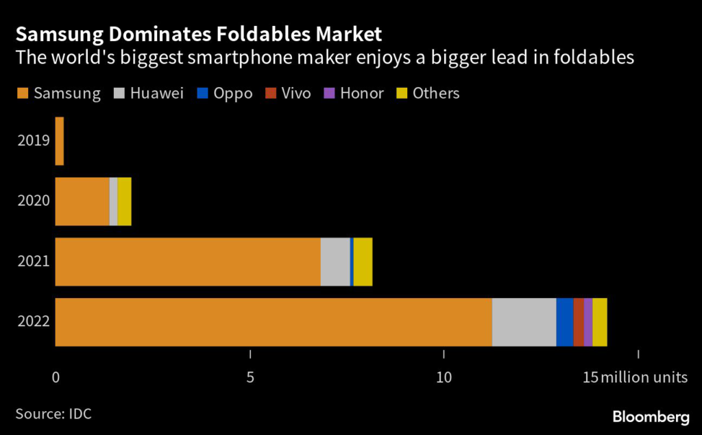 For now, foldables are an Android-only contest, dominated by Samsung Electronics Co.