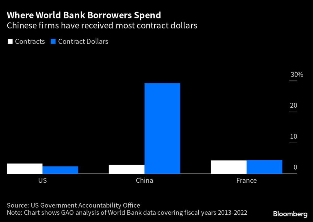 (Bloomberg) — Businesses in China received almost one third of World Bank-funded international contracts, in dollar terms, over the past decade, more than 10 times the value of those awarded to US companies, according to the US Government Accountability Office.