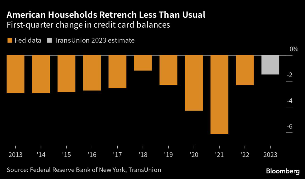 Economists have been closely monitoring card usage for signs of consumer stress, amid growing concern that the economy could tip into recession after more than a year of Fed interest-rate hikes.