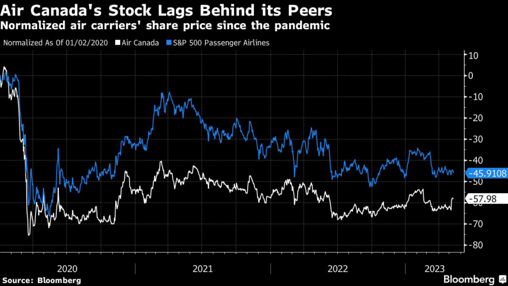 (Bloomberg) — Air Canada broke even in the first quarter, taking advantage of pent-up demand for travel and lower fuel costs as it edges closer to a full recovery from the pandemic.