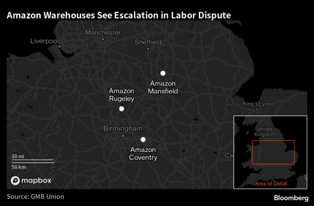 Amazon.com Inc. workers are trying to unionize at a major warehouse in the UK, as the company’s standoff with labor groups enters a new front.