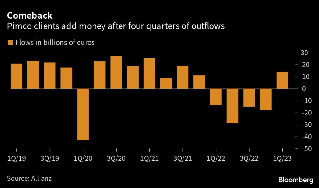 The giant fixed-income manager recorded €14 billion ($15.3 billion) in inflows, parent company Allianz SE said on Friday, after outflows of more than €75 billion last year.