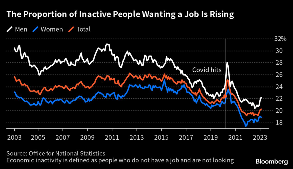 (Bloomberg) — The UK will be able to fund a 2 percentage-point income tax cut if the government can lure hundreds of thousands of people who left the workforce during the Covid-19 pandemic to return, a key lieutenant of Prime Minister Rishi Sunak said.