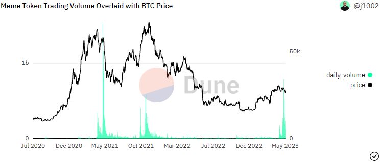 For example, when Shiba Inu-themed Dogecoin led a meme-based boom in May 2021, it was followed soon after by a Bitcoin selloff that lasted into July.