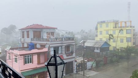DHAKA (Reuters) -Storm surges whipped up by a powerful cyclone moving inland from the Bay of Bengal inundated the Myanmar port city of Sittwe on Saturday, but largely spared a densely-populated cluster of refugee camps in low-lying neighbouring Bangladesh.