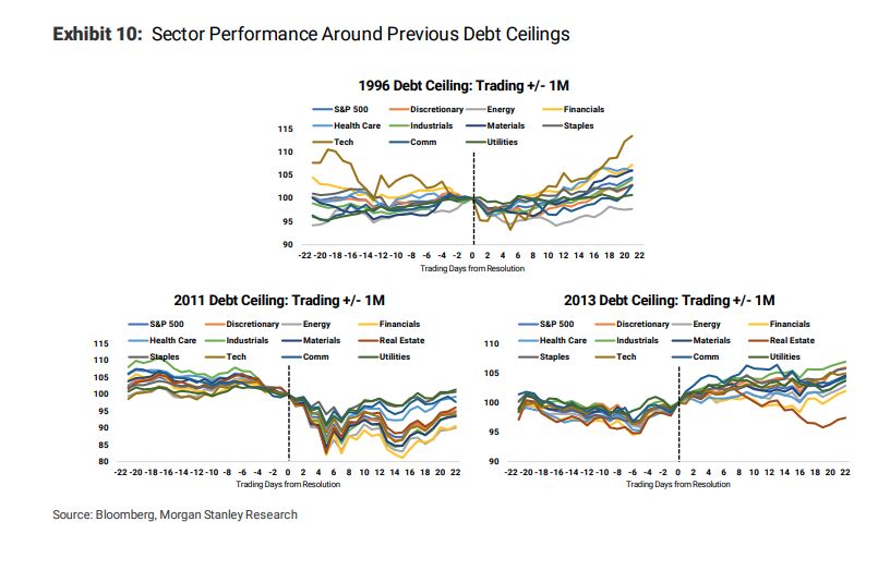 A historical analysis by Morgan Stanley strategists showed energy and utilities stocks to have been the top relative performers during previous debt ceiling debates, with technology, health care, consumer staples and dividend growth performing well following a resolution.