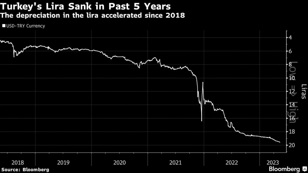 The Turkish currency has been under pressure since Erdogan ramped up a slew of unorthodox policies starting in 2018, including interest-rate cuts to boost growth even as inflation surged, exchange-rate controls and state intervention.