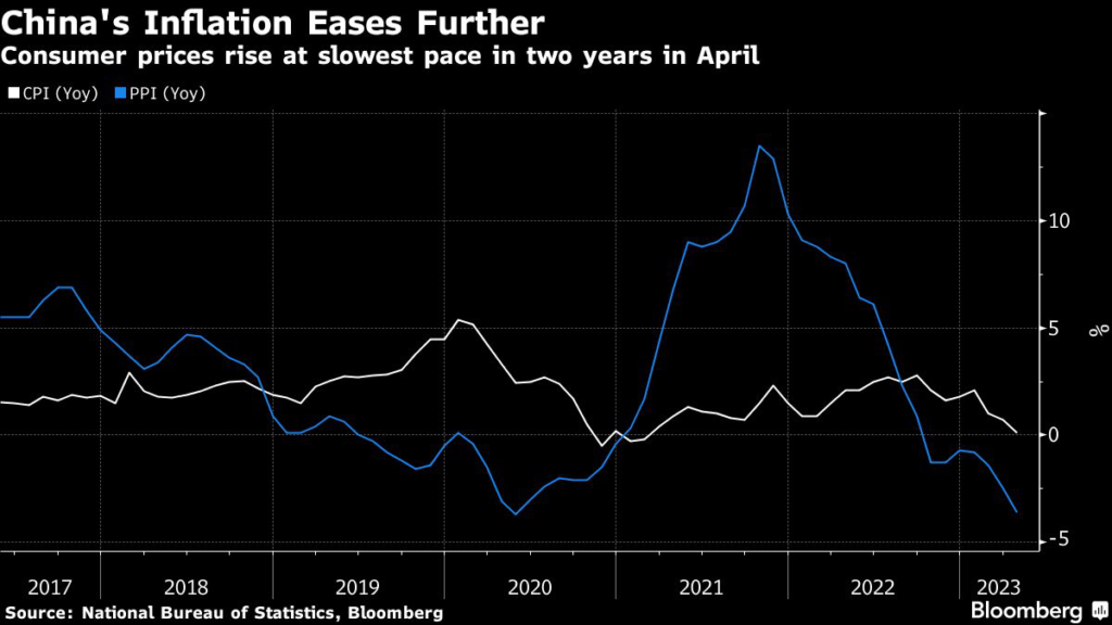 The PBOC said Monday that inflation was “mild” and may gradually rebound in the second half of 2023, adding that China is not in “deflation.” Instead of repeating that it would “keep a close eye on inflation” like it did in the previous quarterly report, the PBOC only said it would pay attention to the “marginal changes in prices.”