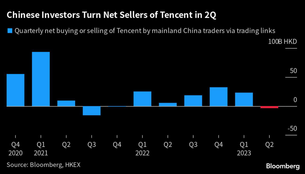 Chinese investors offloaded HK$3.5 billion ($447 million) of Tencent Holdings Ltd. shares this quarter, putting the stock on track for the first three-month net outflow since 2021, according to data compiled by Bloomberg.