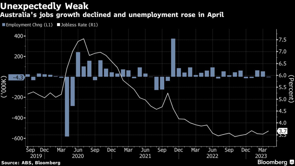 Australia unemployment unexpectedly increased in April as employers cut jobs — led by full-time roles — reinforcing the case for the Reserve Bank to stand pat at next month’s policy meeting.