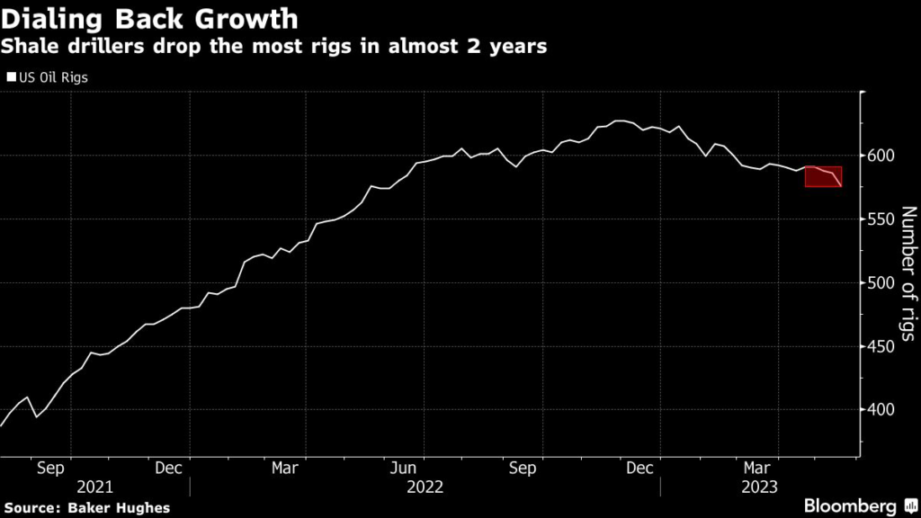 It’s the biggest weekly drop since September 2021. The pullback was led by the Permian Basin of West Texas and New Mexico, the most prolific US shale play, where four rigs were dropped.