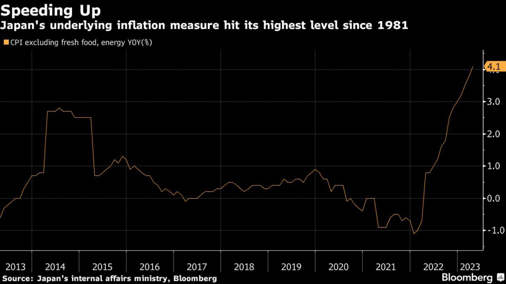 (Bloomberg) — Bank of Japan Governor Kazuo Ueda continued to strike a dovish tone hours after data showed underlying inflation accelerating to the fastest pace in more than four decades.