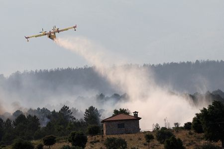 MADRID (Reuters) -Emergency crews evacuated around 600 villagers in western Spain overnight as a wildfire blamed on arsonists ravaged up to 8,000 hectares (19,800 acres) near the border with Portugal, officials said.