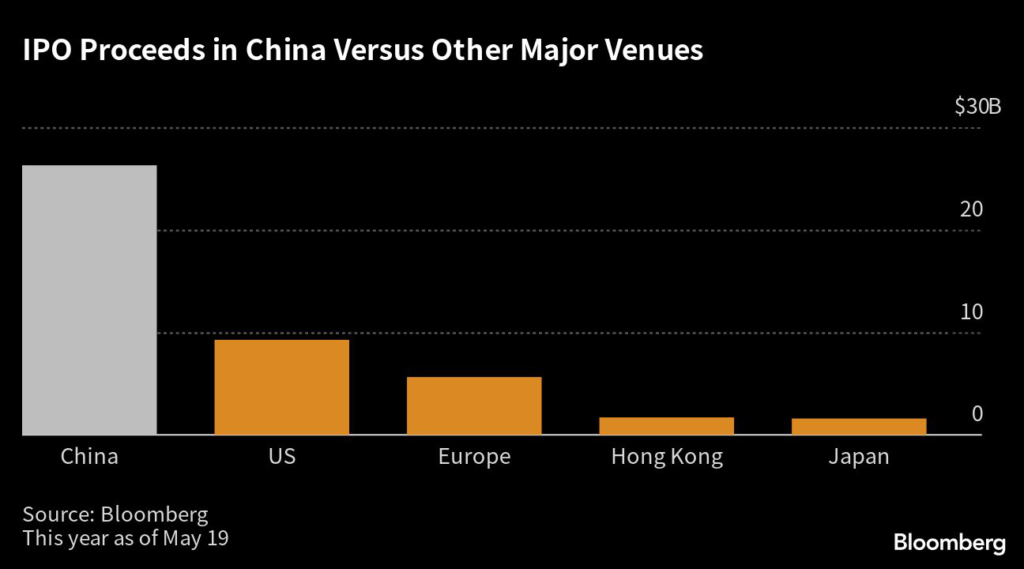 While the pace of offerings has slowed in 2023, with $26.9 billion raised year-to-date, the amount is still higher than the combined tally for listings in the US, Hong Kong, Europe and Japan.