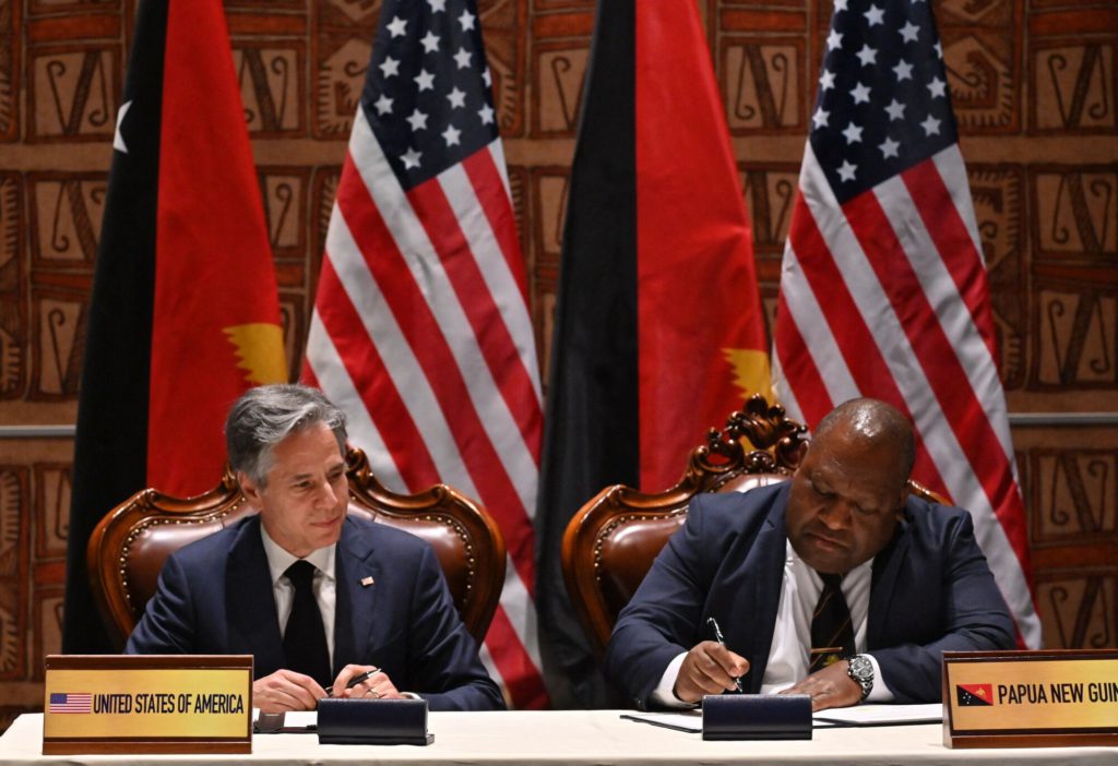 US Secretary of State Antony Blinken met with Prime Minister James Marape in Port Moresby to deepen engagement with a Pacific island nation strategically located near trade routes to allies Australia and Japan.