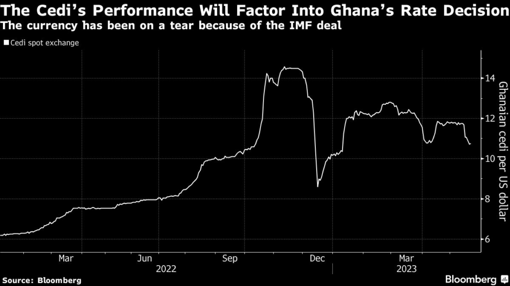 (Bloomberg) — Economists are divided on whether Ghana will raise interest rates for a sixth time in a row after the International Monetary Fund listed continued monetary tightening among conditions for a $3 billion bailout program sealed last week.