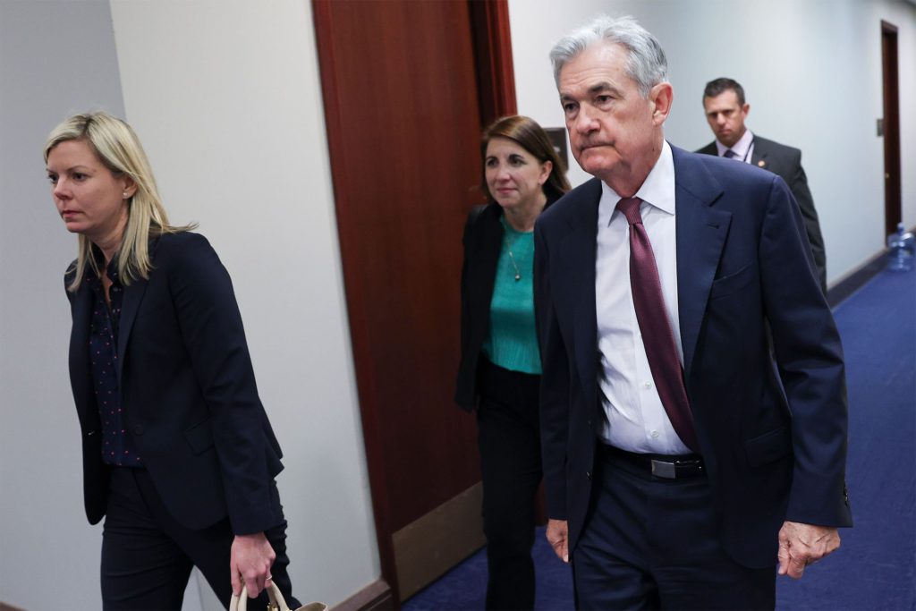 (Bloomberg) — Federal Reserve Chair Jerome Powell avoided discussing debt-limit negotiations Tuesday during a closed-door meeting with a group of House Democrats as a standoff over raising the federal borrowing limit continued in Washington.