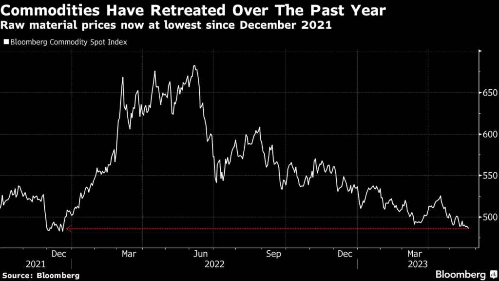 Commodities have sunk this year, with a Bloomberg gauge tumbling by almost 10% to hit the lowest since 2021 this week. The declines in energy and metals have been driven largely by China’s weaker-than-expected emergence from Covid Zero and concerns that the US is now headed for recession after an aggressive round of rate hikes from the Federal Reserve to contain inflation.