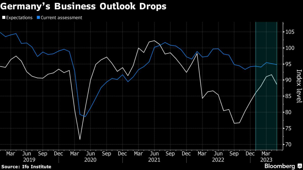 (Bloomberg) — Germany’s business outlook deteriorated for the first time since October as a struggling manufacturing sector threatens to undermine the recovery of Europe’s biggest economy.