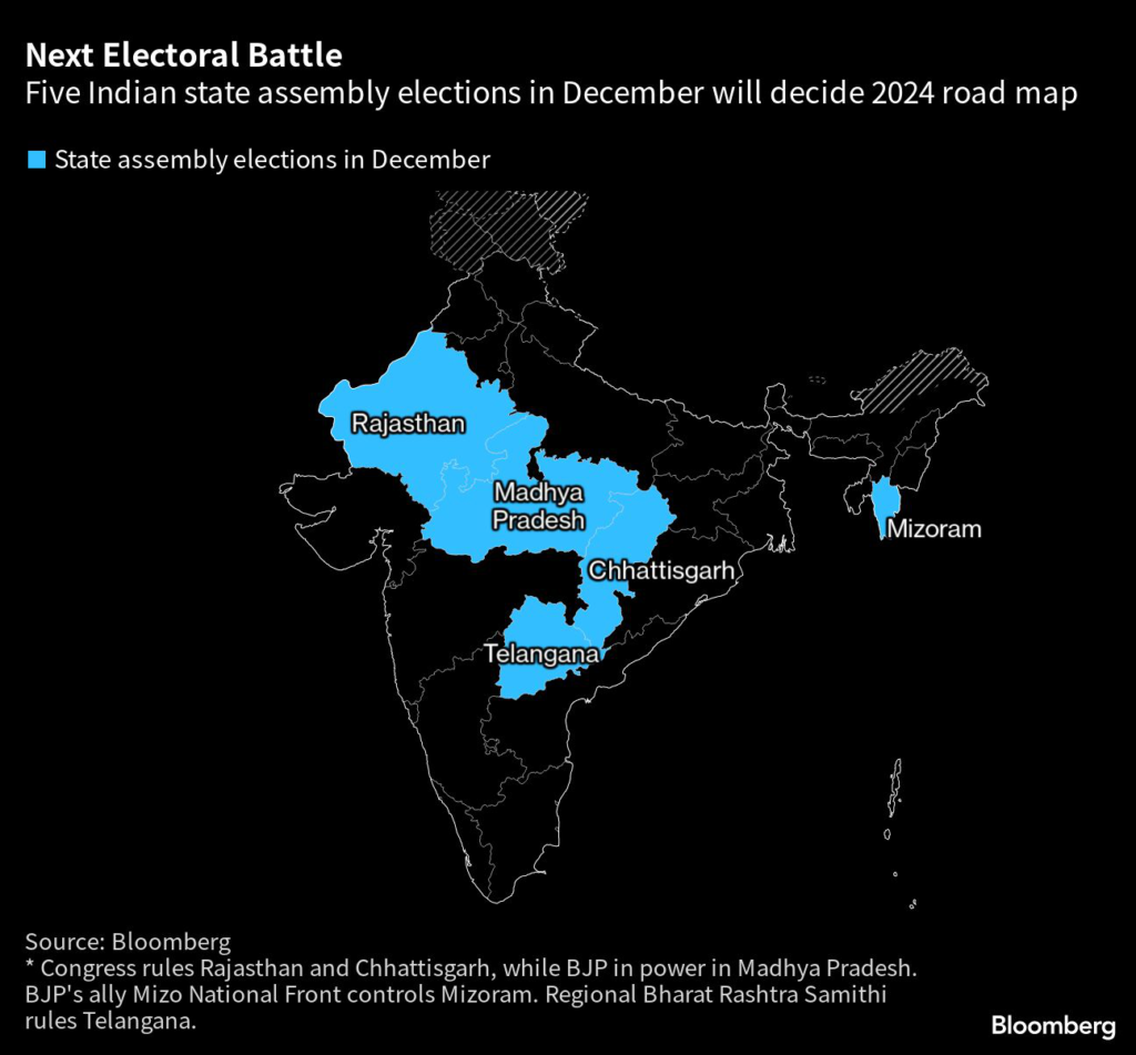 (Bloomberg) — Indian Prime Minister Narendra Modi’s popularity remains strong despite his party’s loss in a crucial state election, but his main rival Rahul Gandhi is also gaining ground, indicating the opposition could gather momentum ahead of the 2024 national election.