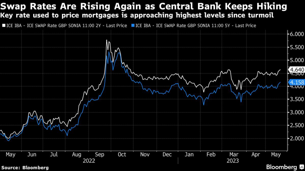 “The further rise in swap rates today will hit affordability and demand,” said Niraj Shah, an economist at Bloomberg Economics.