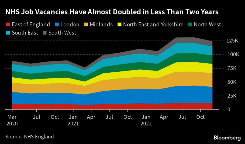 (Bloomberg) — England’s health-worker shortage is so severe that the National Health Service can’t staff “virtual wards” that were meant to relieve the burden on its struggling hospitals.
