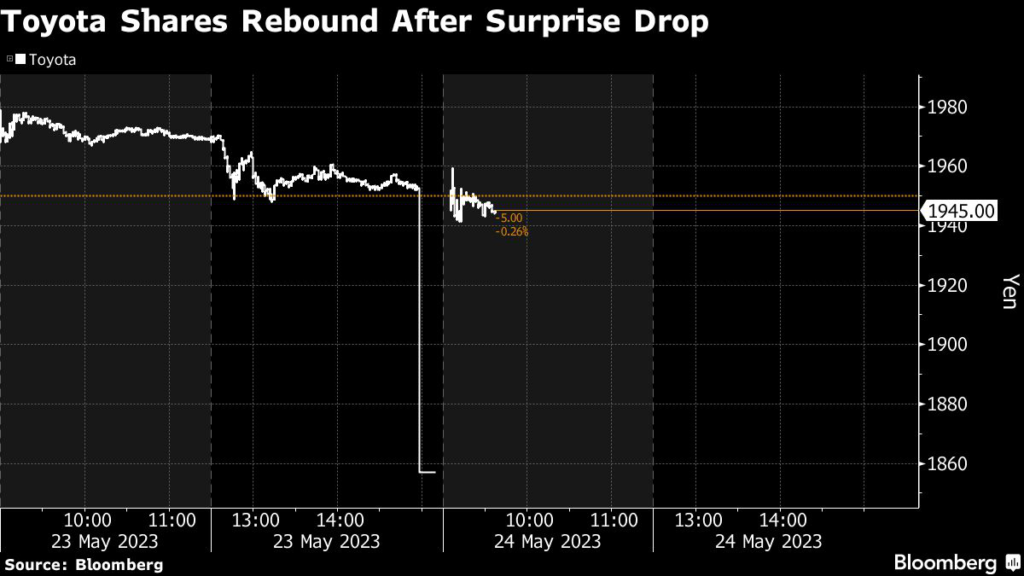 (Bloomberg) — Toyota Motor Corp. jumped in early Tokyo trading, rebounding from a sudden plunge in the final minute Tuesday.