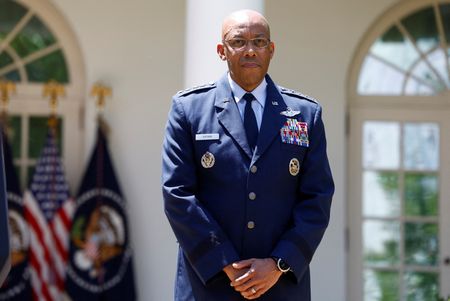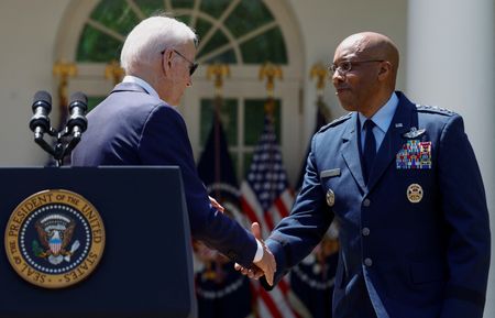 WASHINGTON (Reuters) -Praising his leadership and even his culinary skills, President Joe Biden on Thursday formally announced his nomination of Air Force chief General Charles Q. Brown as the top U.S.