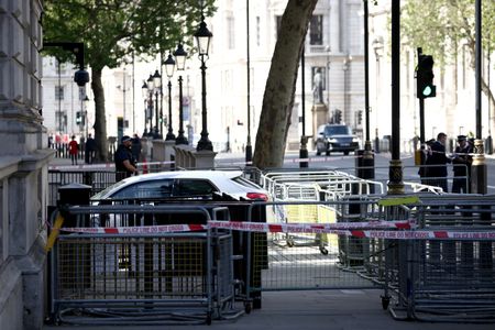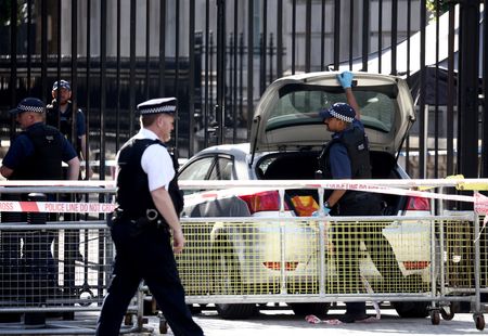 LONDON (Reuters) -A man was arrested on Thursday after a car collided with the front gates of Downing Street, site of British Prime Minister Rishi Sunak’s office and residence, in an incident London police said was not currently being treated as “terror-related”.