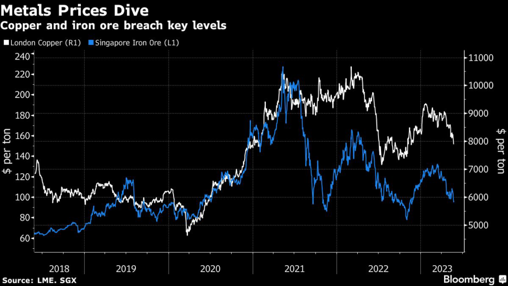 So it’s probably no coincidence that copper has dived below $8,000 a ton and iron ore is trading south of $100 after metals luminaries gathered in Hong Kong and Singapore to chew over the parlous state of global demand and China’s recovery.