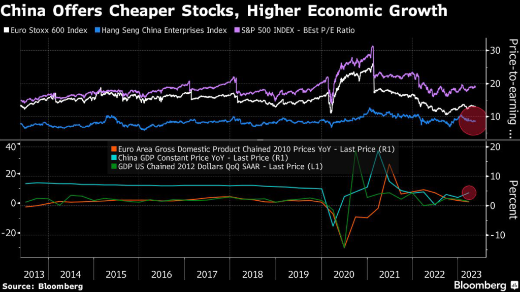 There’s also the low price-to-earning ratio of Chinese stocks after the battering they’ve taken since early 2021 thanks to Covid lockdowns, Beijing’s regulatory onslaught and geopolitical tensions.