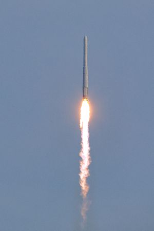 (0924 GMT) in its third flight after technical glitches caused the launch to be cancelled a day earlier.