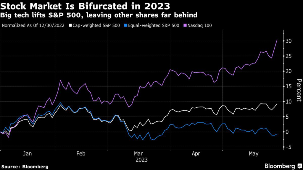 Buttressing big tech’s superior performance now is a gale of tailwinds ranging from AI optimism to better-than-expected earnings and a flight to safety assets.