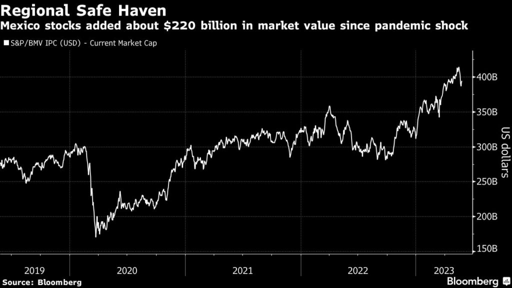 (Bloomberg) — President Andrés Manuel López Obrador’s meddling in the private sector is denting Mexico’s appeal as a safe haven after a stock rally that added about $220 billion in market value in the past three years.