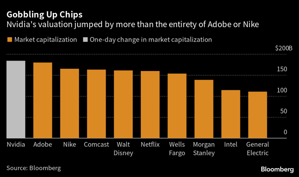 The announcement prompted one of the largest market capitalization jumps in history: the stock rose 24% on Thursday, adding $184 billion to the Santa Clara, California-based company’s valuation.
