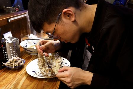 TAIPEI (Reuters) – A 14-legged giant isopod is the highlight of a new dish at a ramen restaurant in Taipei and it has people queuing up – both for pictures and for a bite from this bowl of noodles.