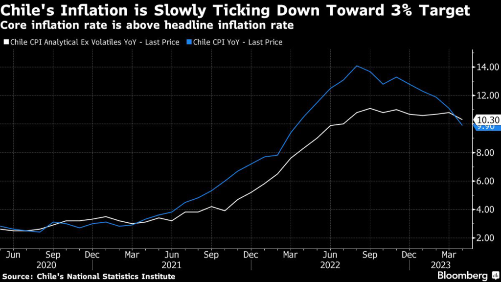 (Bloomberg) — Chile’s central bank said there’s no evidence that the domestic inflation slowdown had been consolidated, even as headline consumer price and consumption readings head in the right direction.