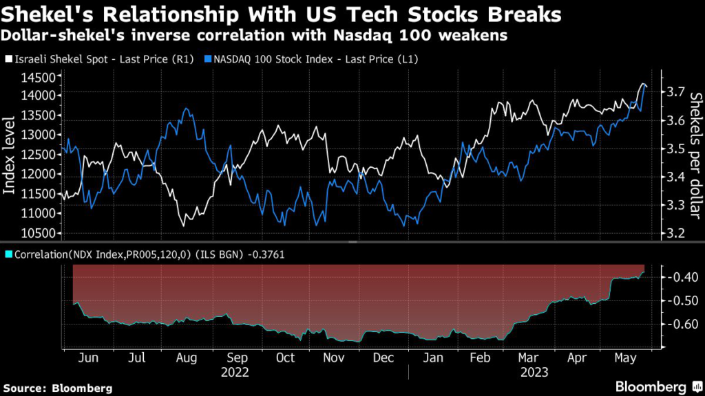 The shekel’s correlation with the performance of global technology stocks began to break down in January amid massive protests against Netanyahu’s plans to give politicians more control over the judiciary and its appointments.