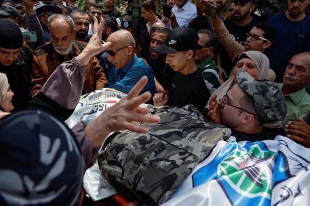 JENIN/HOMESH, West Bank (Reuters) -Israeli forces killed a Palestinian security officer during clashes in the occupied West Bank flashpoint city of Jenin on Monday, the Palestinian Fatah faction said in a statement.
