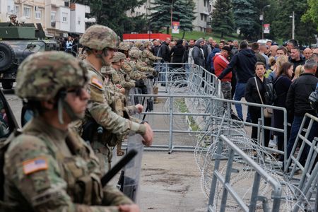 LEPOSAVIC, Kosovo (Reuters) – Around 25 NATO peacekeeping soldiers defending three town halls in northern Kosovo were injured in clashes with Serb protesters on Monday, while Serbia’s president put the army on the highest level of combat alert.